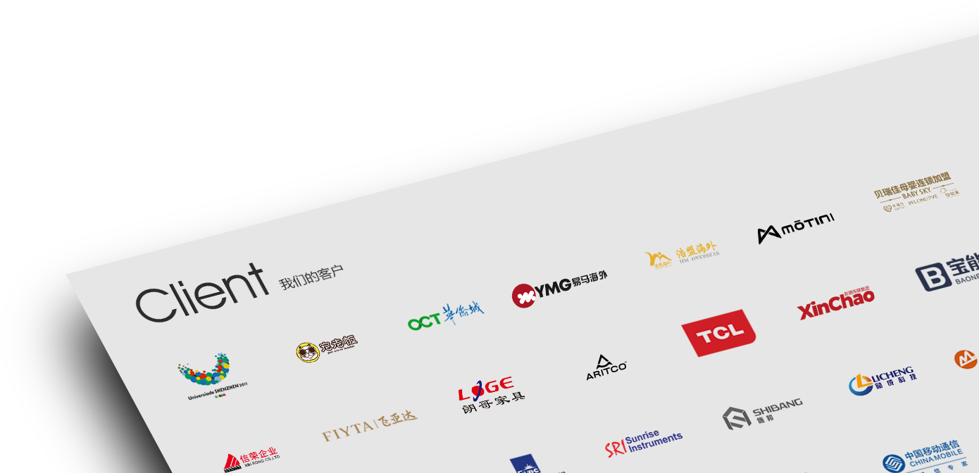 我們的客戶來自各行各業(yè),為了共同目標(biāo),我們在工作上密切配合,從創(chuàng)業(yè)型小企業(yè)到知名品牌,感謝他們對我們的高要求,感謝他們從不同領(lǐng)域給我們帶來的挑戰(zhàn),讓我們激情的團(tuán)隊有機會用頭腦與智慧不斷的給客戶帶來驚喜。